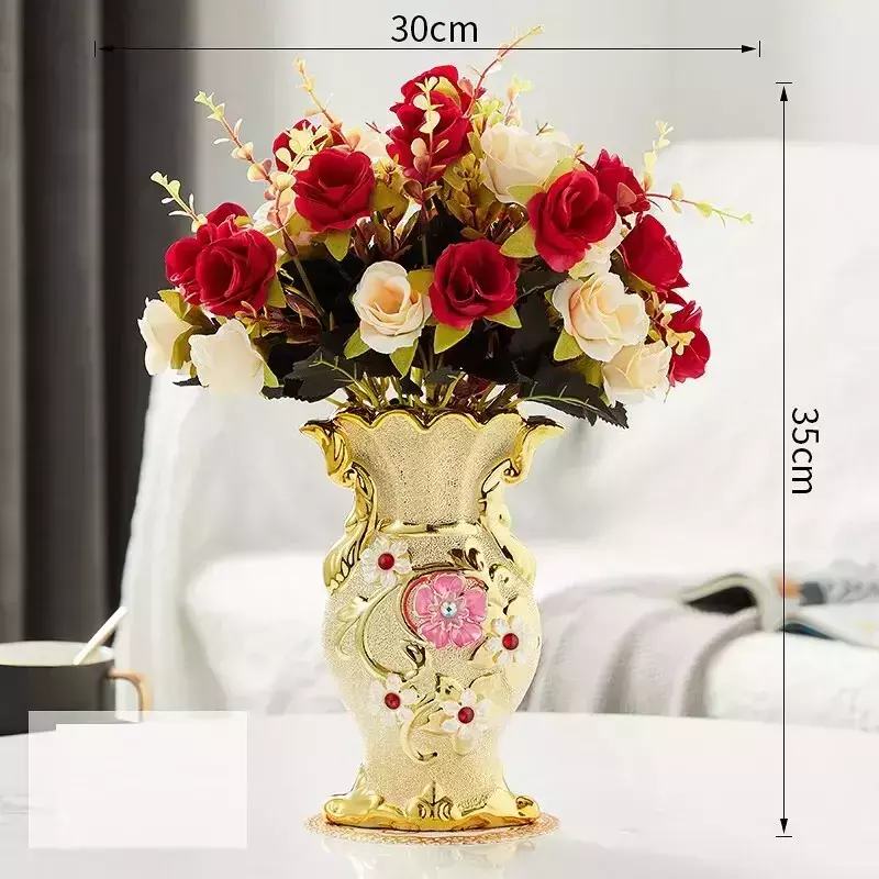 Surpreenda com este lindo e exclusivo arranjo de flores! O vaso é feito de porcelana vintage com acabamento em cor ouro fosco, para dar o toque final perfeito à sua decoração.